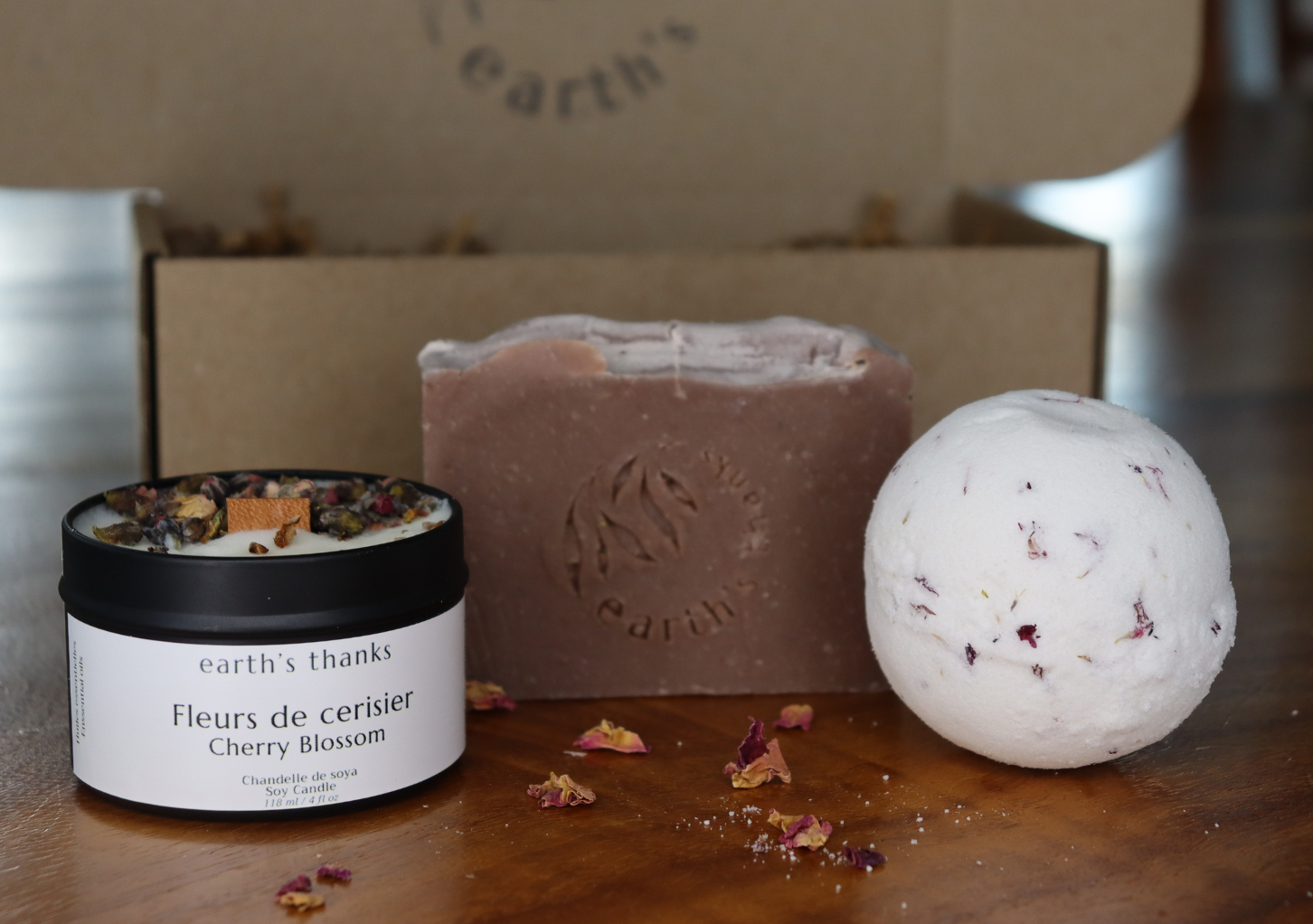 Japanese Cherry Blossom Luxury Gift Box | Soy Candle, Handmade Soap & Bath Bomb